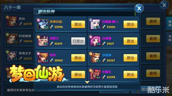 派出伙伴,伙伴被其他玩家雇佣后可获得小量铜钱奖励