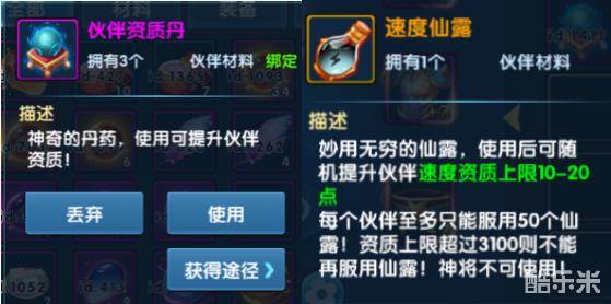 资质上限还可以通过仙露提升,在珍宝商店有几率会刷出。虽然仙露只能提升固定的资质,但是提升的上限是比较高的,建议有钱一定要买。