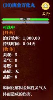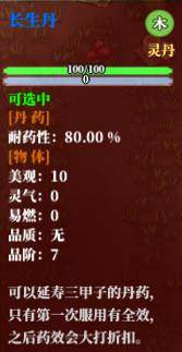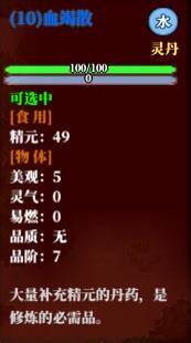 部分丹药可以永久增强角色属性,这些丹药对每个修行者而言都是至关重要的。特别注意的是,耐药性高的丹药,服用多次药效会大打折扣。