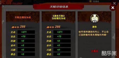 2、点击天赋名称可以查看当前天赋的详细信息,其中的各项属性加成。