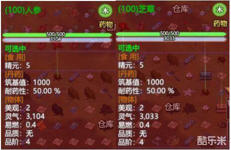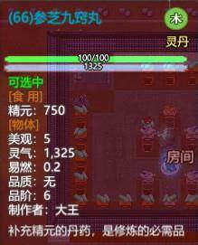 以人参,芝草为例。如图所示,直接服用一份人参/芝草可以补充5点精元。