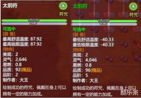 例如:太阳符太阴符可以让角色不畏寒暑。