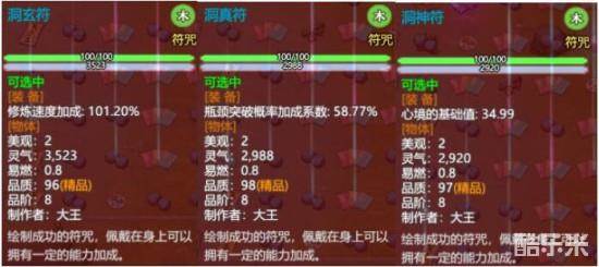 符咒是内门才能制造的特殊装备。每名角色只能装备3张符咒。