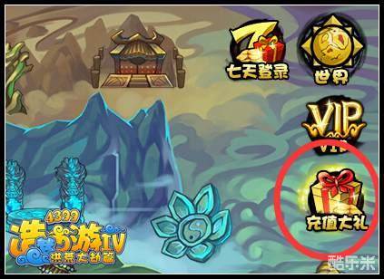 1、进入游戏后,在右侧可以看到“充值大礼”按钮,点击即可进入