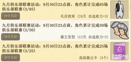 活动期间内角色累计20场俱乐部联赛 奖励:高级徽记卡3张