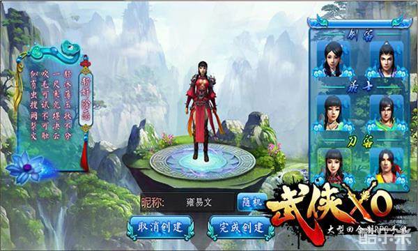 进入游戏首先要选择职业。《武侠XO》中有剑客、居士、刀客三种职业可以选择,它们的初始属性各有千秋。玩家达到一定等级后需要选择加入门派,不同门派的特色也各自不同。三种职业与门派之间并没有特殊的关系,完全可以根据自身的喜好去选择门派加入。