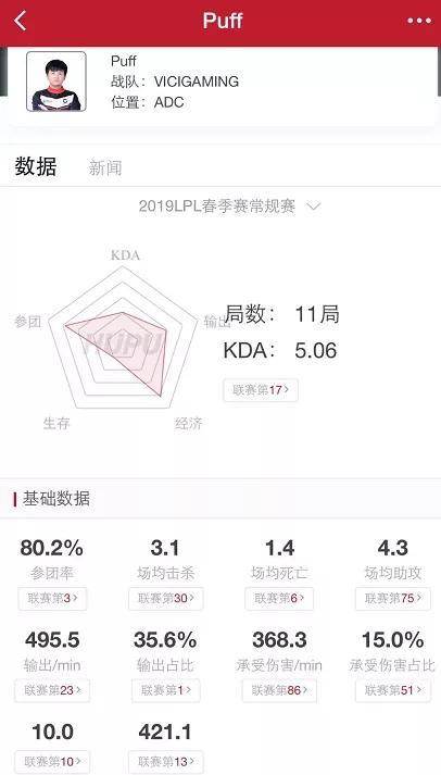 VG战队的Puff,很多人都认为今年VG战队又会联赛垫底,但是没想到龙哥当上教练之后VG开始稳住了,并没有垫底,其中还有很大程度是换上了Puff这名选手,死亡率低,输出占比联赛最高,参团率联赛前三,各项数据相当华丽,可以说是VG战队中的大腿选手了!