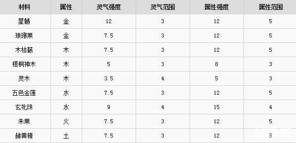 属性强度就是影响五行生克的数值,越高影响越大,比如原木的数值是1,灵木是5,放一个灵木的效果和放5个原木的在影响五行方面的效果是一样的。
