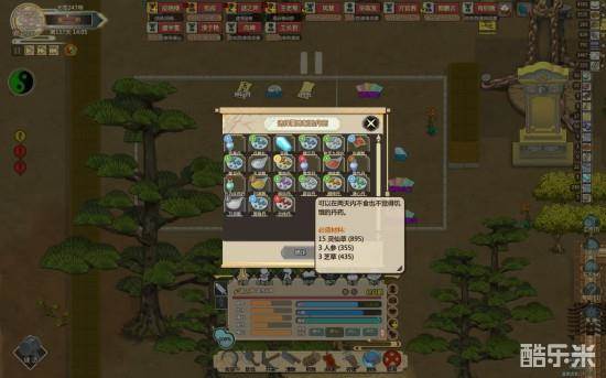 我前期只种了一小片灵仙草,主要是种的人参和芝草。第二年发现堆积的仓库太多了。于是乎就打算炼丹。