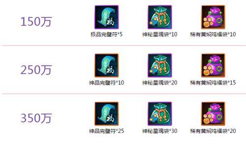活动期间到达150万、250万、350万的玩家可以获得丰厚奖励;