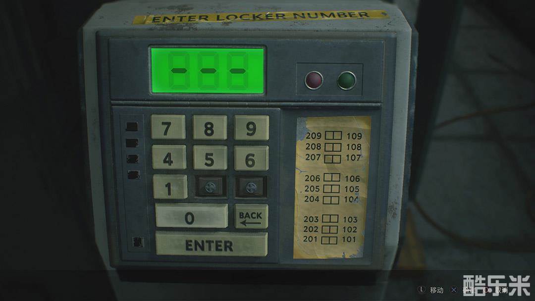 去西办公室对面的扣押物品保管室,会发现按钮机缺失了 2、3 两个键(边上有文件)。此时可以先输入 106,取得「胶卷」,输入 109,取得「手枪弹药」。