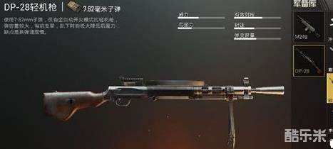DP-28威力属于中档,射速跟射程都比M249小,不过容易搜到,玩家选择几率较高,大部分玩家基本都会选择这把枪作为前期过渡的武器。它和M249相比起来,同样属于轻机枪,不过没有那么厚重,可操作的空间更大些。一样可以进行火力压制,在对敌人载具进行攻击时可以提供较大优势。趴在地上可以大幅度减少后座力,这点要利用好。