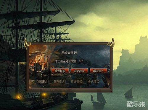 在进入《大航海》副本探险之前,还会有各种不同的贴心模式供玩家选择:休闲模式、普通模式、英雄模式、史诗模式,选择之后玩家还可以自动挑战,免去了玩家很多寻找海盗的时间。只要挑战成功,马上就能丰厚的奖励如航海日志、荣誉之证、活力泉水、戒备、鼓舞士气全速突进等道具和海量的经验在等着玩家领取。每天只有10次机会,不要错过哦!如果惧怕,你就退出冒险吧!