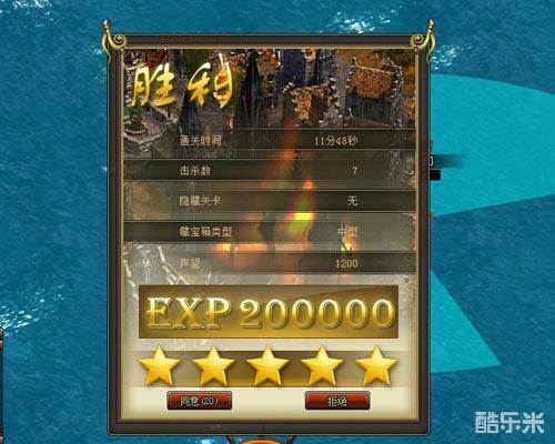 在挑战之后,05wan《大航海》系统会自动给玩家进行评分,这是游戏新近推出的一个直观的功能,可以让玩家对自己的挑战成功一目了然。里面说明了玩家挑战的时间、击杀数、评星级、获得的经验和奖励等等。特别是对玩家挑战副本的评价,可以让玩家下一次更快更有效率地通关副本哦!