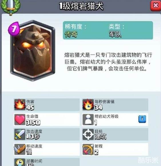 皇室战争中目前共有10多张传奇卡,大部分的传奇卡都是相当给力,在一套卡组中的地位至关重要,下面就让小编来为大家介绍一下传奇卡熔岩猎犬吧。