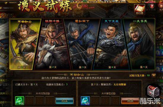 2.演义试炼玩法分为5个关卡,每个关卡可获得相应奖励。