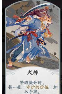 犬神如果升到3阶满可以获得3张(0-1,1-2,2-3)加上本体身材是2-6,最终是5-9的怪(形态以后再说)中期4-8的身材可以不被鬼王酒吞(7-7)白吃,但是前期犬神并不值得去优先升级,所以额外的守护的价值的作用也体现出来了,是朴实好用的牌。