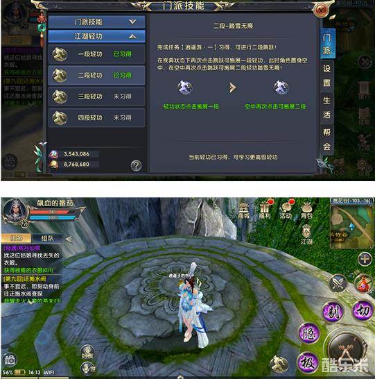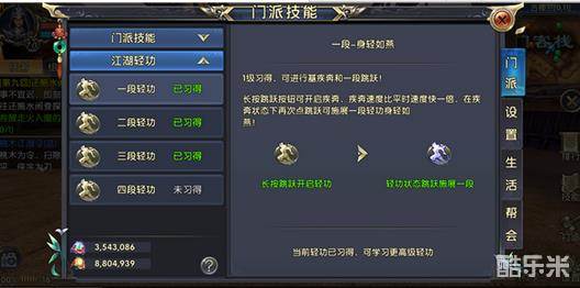 游戏初始就给玩家配备了一段轻功身轻如燕,玩家长按跳跃按钮即可开启轻功,这里也不一一细说了,反正很简单。