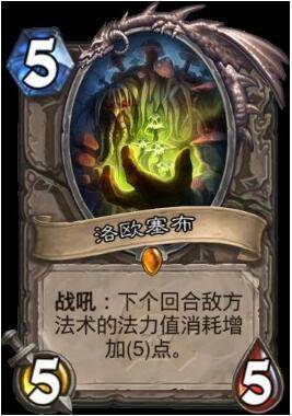 如果说火车王是标准快攻的扛把子,那么洛欧塞布就是狂野快攻的半边天。洛欧塞布的封魔效果是其他随从根本没有的,是独一无二的一张传说卡。标准的快攻最担心的就是对手的AOE,苦心经营的场面一张低费的AOE直接能逼得你投降(别看了,说的就是你——亵渎)。在狂野的快攻面对这些法术就显得更加得心应手一些,有洛欧塞布的战吼,对手的法术没有发挥作用的余地,这样也基本能确保斩杀,不会出现临门一脚没踢进去的情况。而且洛欧塞布的适用范围更大,不仅仅局限于传统快攻,最近的狂野公开赛中就有节奏法带塞布的,内战多一张塞布能让对手的冰箱没法及时挂上去,也是确保斩杀的一个手段。