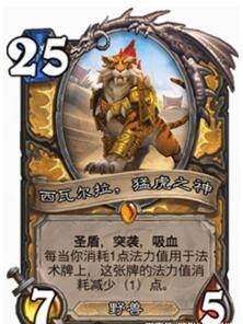 最后则是猛虎之神,作为一张偏功能性的卡牌,上可元气骑25斩杀,下可突袭圣盾免费解场蹭血。可以说除了少了个嘲讽属性,其他方面都非常优秀。如果硬要说个缺点,那就是卡组的强度跟操作难度稍微不太友好,尤其是对于非洲玩家来说。来早了手牌上限减一,来晚了直接沉底。这些画面我肯定你都见过。