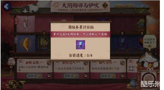 伊吹的每周任务是必须要尽量做完的,因为相较于其他靠肝获得铃铛,每周任务的铃铛真的来得太容易的,对于一些比较为难人的任务,可以进行一两次的刷新找到适合自己练度的任务。伊吹的活动时间有三周多几天,所以有四周的周任务,共计160个铃铛,只要稍加注意,伊吹活动压力减少一半。在这里要提醒大家完成4个周任务后别忘了点击任务左侧的铃铛,有一张蓝票拿。