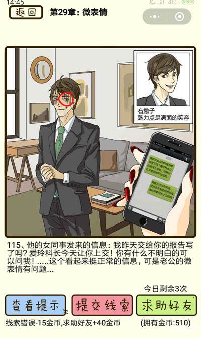 在再见吧渣男手游中微表情第115关男友出轨的线索究竟在哪里呢?相信很多小伙伴们都有这样的疑问,那么感兴趣的下面就来看一下吧~!