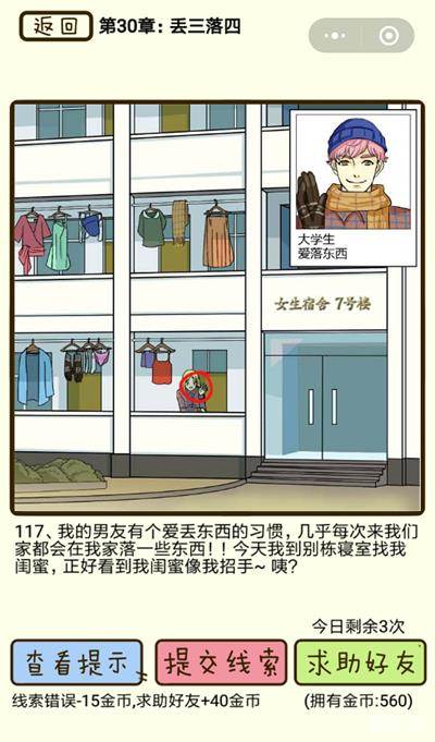 在再见吧渣男手游中丢三落四第117关究竟该怎么过呢?这次我们的男友是个喜欢丢三落四的家伙,那么他有出轨的嫌疑吗?感兴趣的话下面就来看一下吧~!