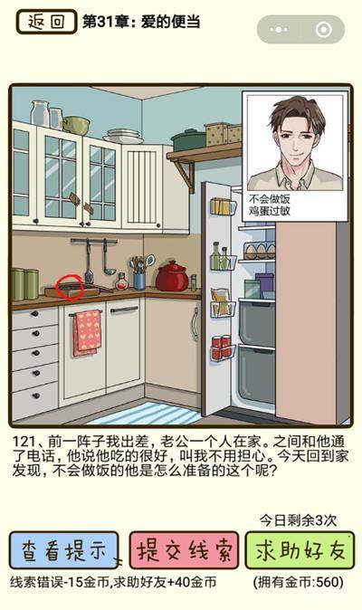 在再见吧渣男手游中爱的便当第121关究竟该怎么过呢?在再见吧渣男手游中爱的便当第121关的线索还是比较容易找的,那么不清楚的话下面就来看一下吧!