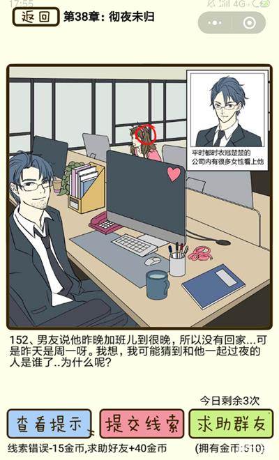 在再见吧渣男手游中彻夜未归第152关男友出轨的证据究竟在哪里呢?相信很多小伙伴们都有这样的疑问哦!那么下面就来给大家介绍一下吧!