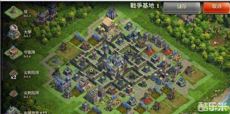 而重骑流最克制的阵型则是大饼阵,最怕的是格子阵,大饼阵,就和名字一样,像张大饼,把所有东西都围在一起,除了最外面有墙里面没有任何城墙,我想国服目前没多少人会这么摆,而克制重骑流的则是格子阵,也和名字一样,把防御建筑和资源建筑围起来,虽然连在一起,但基本建筑间会隔着堵墙。