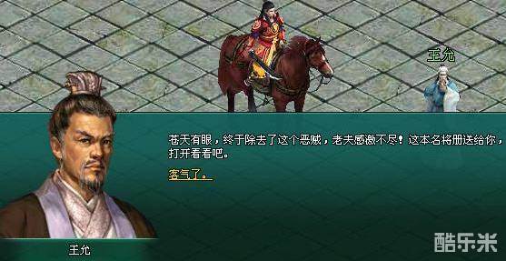 杀国贼之重任在主角的牵动下顺利完成,作为讨贼英雄,主角也从司徒王允捞到了好处——名将册一本。