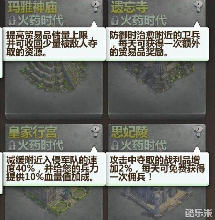 给你进攻时提供额外的收益,并每天给你一次免费的可雇佣的佣兵,想比之下玛雅神庙就差的远了。