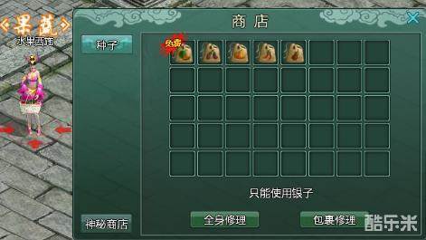 说到种菜,我们第一个反应可能就是种子,种子是去主城买的,卖种子的NPC名叫水果西施,是个很可爱的小MM哦,在她这里,可以买到各种种子:西瓜、茄子、南瓜、辣椒、葫芦……不知道收获时能获得什么东西呢?