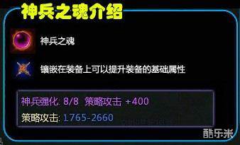 乐趣《盛世三国》中的神兵之魂不止是种道具,更是作为对英雄最好的奖励,只有通过不断的战斗才能获得更多的神兵之魂,除魂器和时装外的11件基础装备都可以使用哦!使用后可永久增加角色的基础属性,神兵之魂使用在不同部位的装备上,附加与装备匹配的属性加成,使用的神兵之魂越多,获得的技能能力加成就越高!