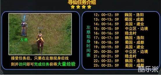 如此神秘的人物,乐趣《盛世三国》怎么会没有呢?40级的玩家朋友们每天都会有一个“寻仙任务”,不用说,这个“仙”就是左慈了。不过左慈神龙见首不见尾,每次出现的地点都不确定,这就需要玩家朋友们去找了。