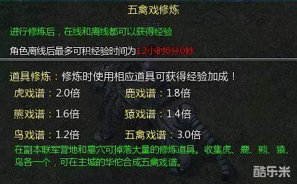 游戏中,我们可以打开五禽戏界面后,选择“传送并修炼”,即可传送到修炼地区进行五禽戏修炼,如果在游戏中发现各种系谱残页(虎,鹿,熊,猿,鹤)使用各种系谱可以使得修炼的时候事半功倍哦!