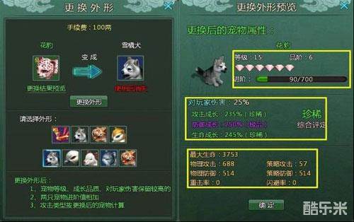 神兽天成,不过其拥有的能力却是各不相同的,游戏中每一只宠物都拥有自己独特的属性。当然,好的宠物除了天赋外,后期的精心培养也是少不了的。在宠物的成长过程中,玩家可以使用“宠物成长丹”来提升它的成长数值,让其拥有更好的能力。宠物成长丹可通过挑战“伯乐密室”副本,或击败虎符中调遣的士兵有概率获得,同时神秘商店也会随机出售。
