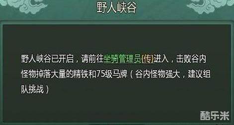 欲与野人较高下,先得清楚野人谷的开放时间,在每日13:30、17:30和22:00野人峡谷将会开放。在野人峡谷,我们将遇见各种怪物:巫蛊野人、巨熊战将、野人谷主。只要击杀这些怪物,就能随机掉落精铁或各种日常消耗道具!若是击杀赤兔,还可使用75级套马索抓捕掉落75级的汗血宝马哦!