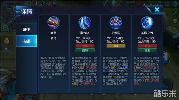 1、夏侯惇生命值低于一半的血量,就会触发被动,普攻和使用技能都会回复一定的生命值,这也是夏侯惇成为上单英雄抗压的原因之一。
