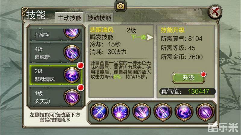 6.悲酥清风&玄天功:使自身周围的敌人攻击力;提高自身及周围队友攻击力。