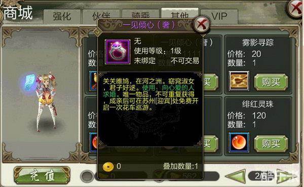 (3)准备好结婚戒指,可以从元宝店买戒指,或者合成结婚戒指,反正要有结婚戒指这一必备条件。