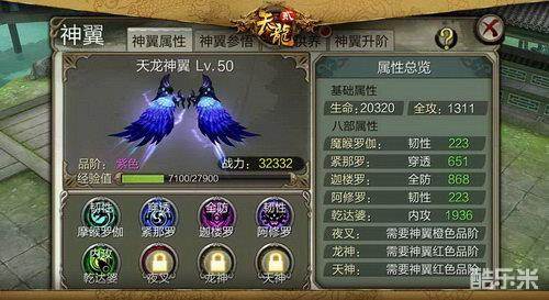 分为神翼属性,神翼参悟,神翼供养,神翼升阶,四大类
