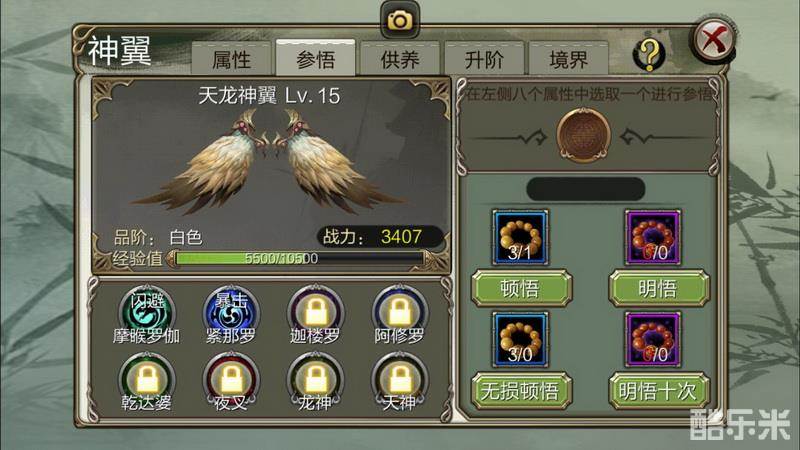 神翼参悟分为【顿悟】和【明悟】。