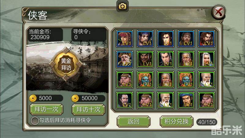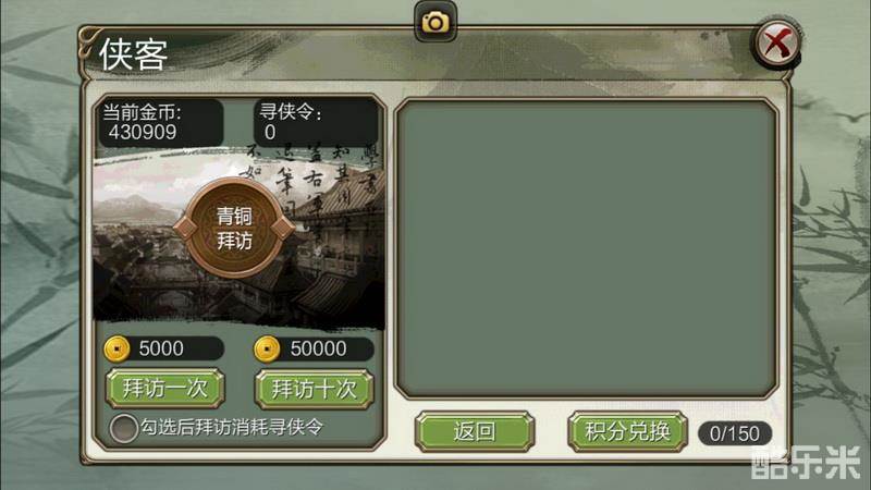 当我们需要侠客时,需要点拜访,拜访一次与拜访十次在金币数量上有区别。