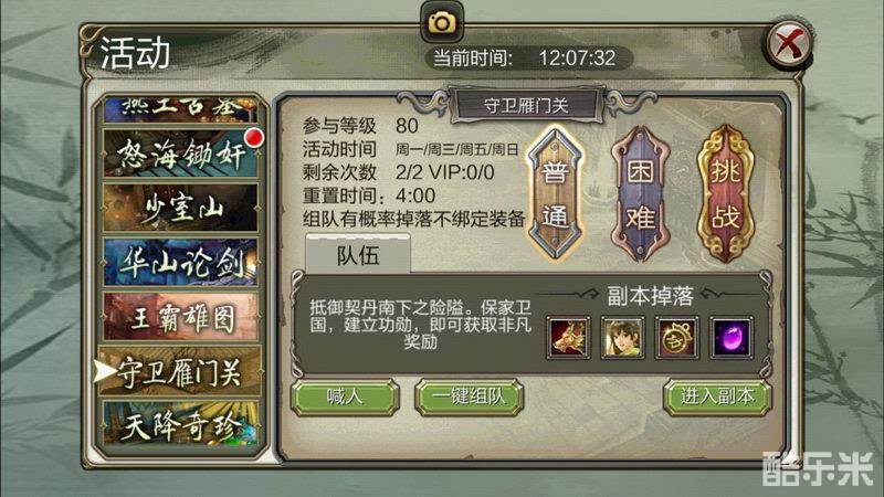 副本玩法:地域契丹南下之险隘。保家卫国,建立功勋,即可获取非凡奖励。