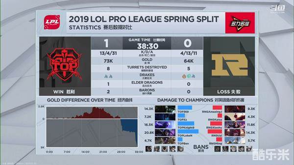 最终,TOP推上RNG高地,将其基地摧毁拿到比赛的胜利,恭喜TOP!