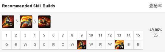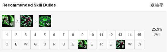 Q技能强化我们的普攻是我们主要的输出技能,W技能提升我们移动速度和攻击速度,提供追击和逃跑还有输出。