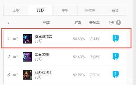 挖掘机经过版本的洗礼胜率飙升达到了56.58%成功登顶,登场率上升了16位。可见挖掘机已经逐渐成为热门打野英雄了。