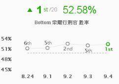 巴德的胜率相对上个版本上升2位成功登顶胜率榜榜首,登场率下降了2位。巴德身为辅助具备很强的游走和爆发能力并且巴德玩法比较特别,是玩家值得的一个选择。