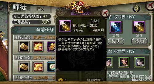 师父通过师徒任务可以获得金币和绑定元宝。